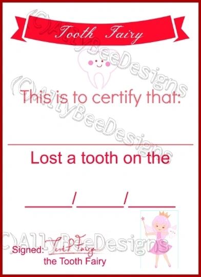Tooth Fairy Lost Tooth certificates (3 colours)