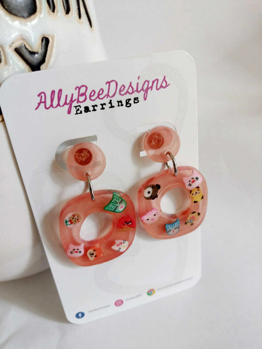 Pink character dangle earrings